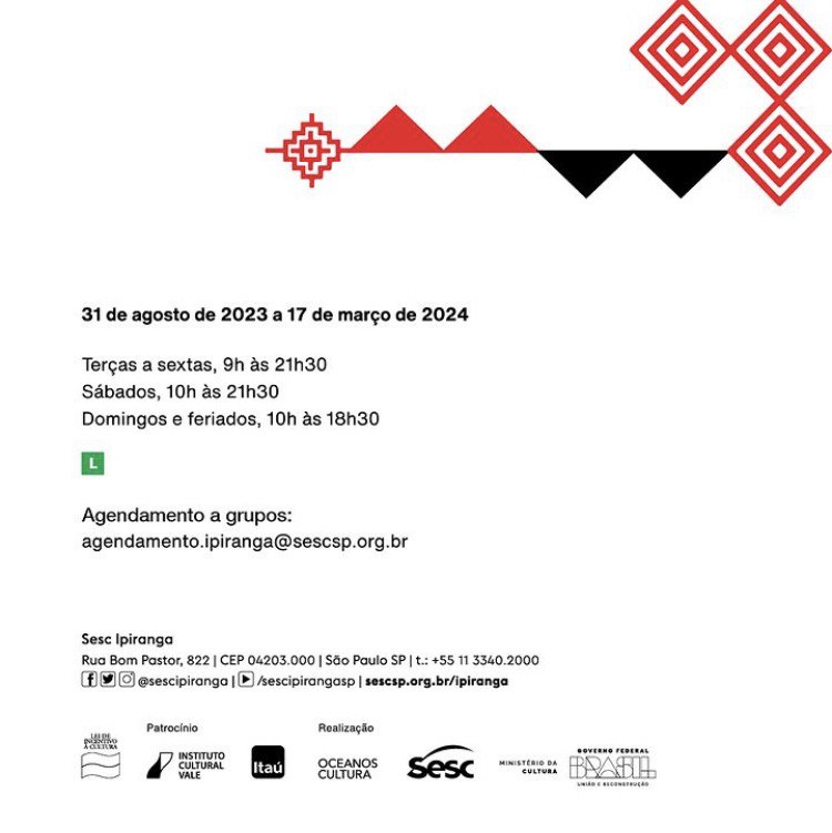 Visitação: De 31 de agosto de 2023 a 17 de março de 2024, terças a sextas, das 9h às 21h30; sábados, das 10h às 21h30; domingos e feriados, das 10h às 18h30